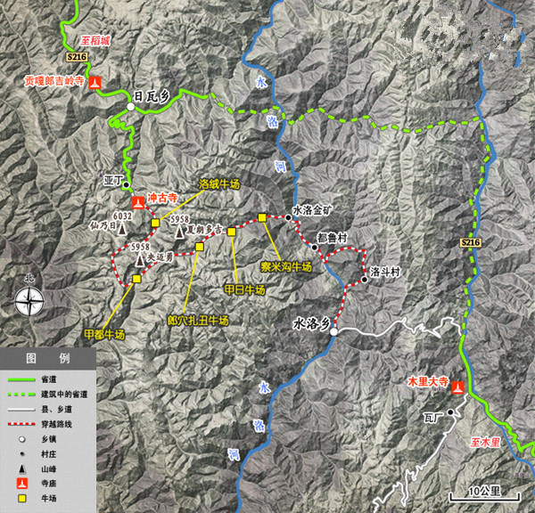 海拔:亚丁村3700米,洛绒牛场4150米,日瓦乡约2150米
