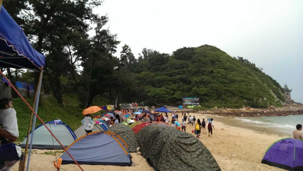 14:00 抵达北扣村沙滩营地,选好地方扎营,领队先演示如何搭帐篷,没搭过要认真看领队是怎么搭咯,若搭的方式不对,容易造成帐篷杆断裂,那就只能躺在沙滩上看星星到天亮了