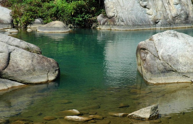1330 到达四级电站,眼前出现一潭清水,可以开始泡潭子了,领队会带上换衣帐篷!
