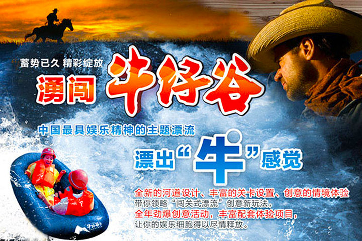 牛仔谷漂流位于广东清远市清新县太和镇五星管理区.作为全国首创的“主题漂流景区”,整体围绕以美国西部牛仔文化而营造,将漂流的过程,变成一场牛仔闯关大冒险!“全新的河道设计、丰富的关卡设置、创意的情境体验”开创出 “闯关式漂流”创意新玩法,越过“无底深渊”、冲入“枪林弹雨”、勇闯“沸水深潭”……整个漂流过程情节化,让游客扮演牛仔角色层层闯关获得胜利,进而大大提升了漂流的趣味性与可玩性,让广大游客乐此不疲、流连忘返。